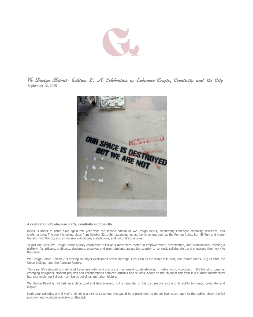 WE DESIGN BEIRUT EDITION TWO FEATURED IN